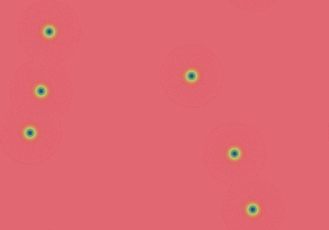 These images and movie demonstrate the behavior of the Gray-Scott reaction-diffusion system with σ=Du/Dv=2 and parameters F=0.0340, k=0.0690.