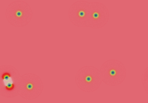 These images and movie demonstrate the behavior of the Gray-Scott reaction-diffusion system with σ=Du/Dv=2 and parameters F=0.0420, k=0.0690.