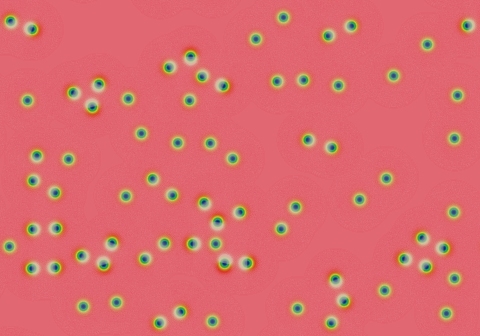 Solitons are the only viable form. Any close pairs will drift apart very slowly; drift speed diminishes exponentially with distance. These solitons are noticably smaller than those to the west.